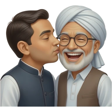Create an emoji Congress leader RAHUL GANDHI kissing a Muslim Mulla 💋 and laughing together emoji