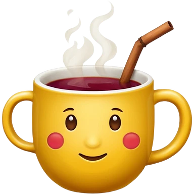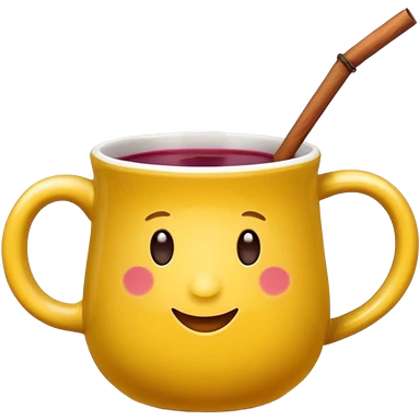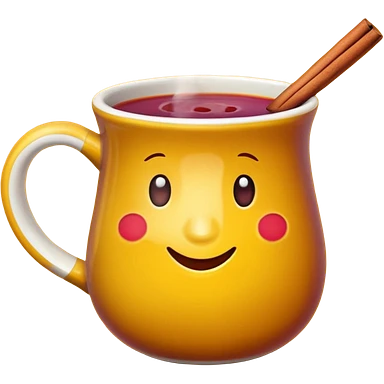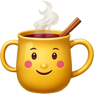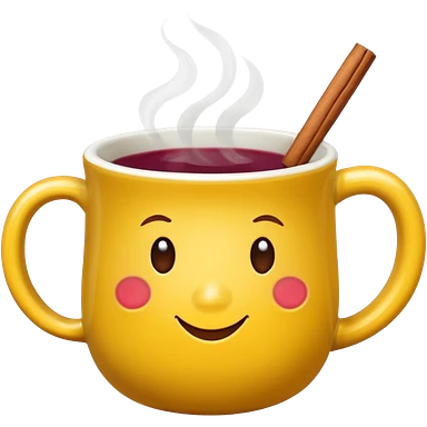 a yellow mug with steaming mulled wine emoji