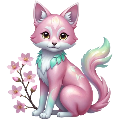 Multicolored divine sparkly marble Sakura shiny ethereal pastel iridescent light pale cute adorable pretty feminine elegant realistic floral exotic Falvie-Fionbri-fursona, full body emoji