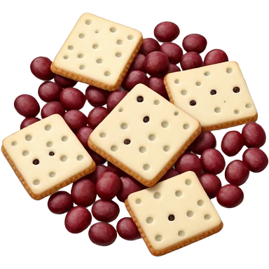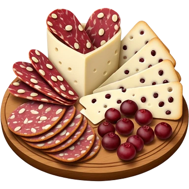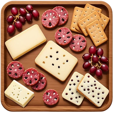 Multigrain crackers, white cheddar cheese, salami, and chocolate cranberries emoji | AI Emoji Generator