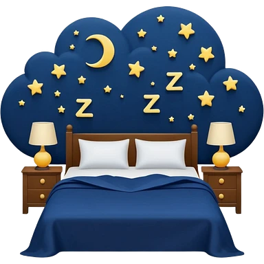 multiple ZZZ symbols rising upward, a comfortable bed with a dark blue blanket and white pillow, nighttime vibe, flat design, soothing colors emoji