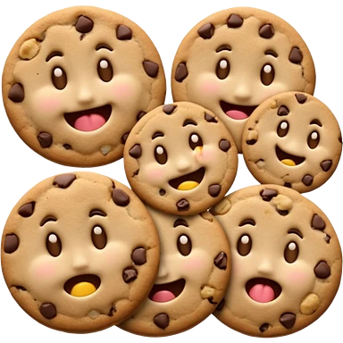 please create cookie emojis, similar to a cookie that looks like it's smiling for a happy cookie, or a cookie that looks like it's frowning for a sadcookie. please use other emotions other than happy or sad emoji