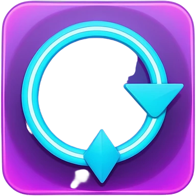 Futuristic retry arrow: an open curved neon arrow forming almost a circle but leaving a gap, clear restart motion. Glowing blue and violet Virtuosa colors, soft Ovi-like floating shape, playful high-tech style, luminous semi-matte texture. No text. Full background. emoji