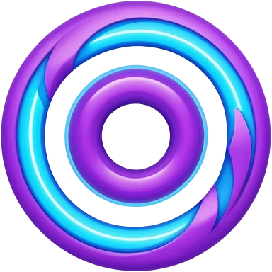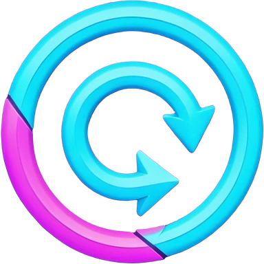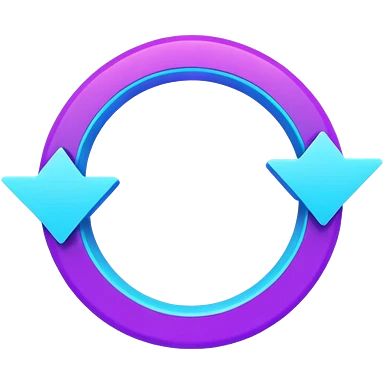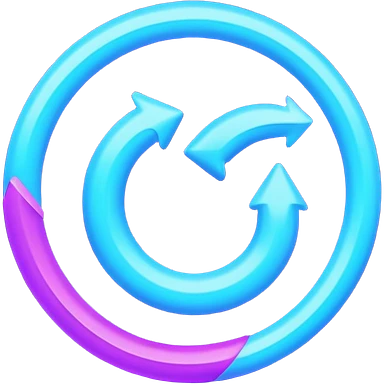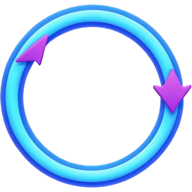 Circular loop arrow in Virtuosa style: smooth rounded shape forming a full loop, neon blue (#00A9F4) and violet (#9A1AFF) glow, futuristic 3D look, friendly and modern. No text. Full background. emoji