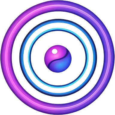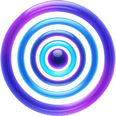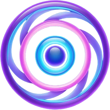 Futuristic retry symbol for a game: glowing circular energy ring with a rotating neon core, vibrant blue and violet Virtuosa colors, smooth soft shapes like a friendly floating orb, dynamic swirl effect suggesting a restart. Playful, modern, high-tech. No text. Full background. emoji