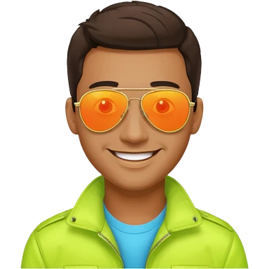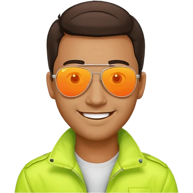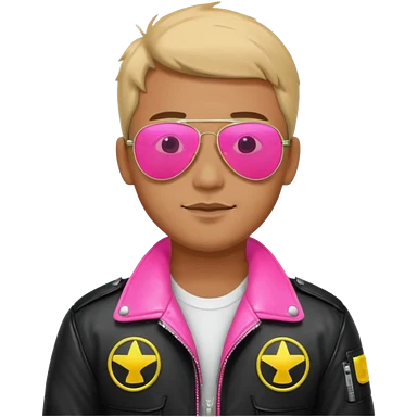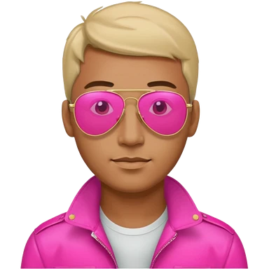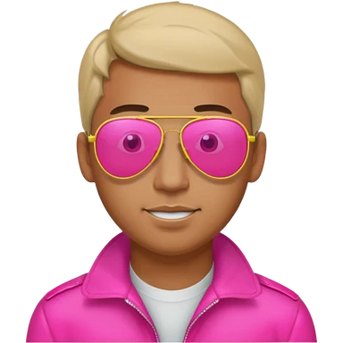 1980s man wearing reflective neon pink aviator sunglasses and a pilot jacket emoji