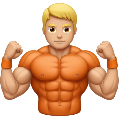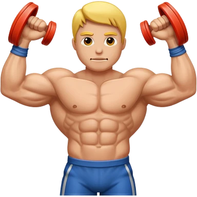 muscled happy guy, long yellow hair, blue t-shirt emoji