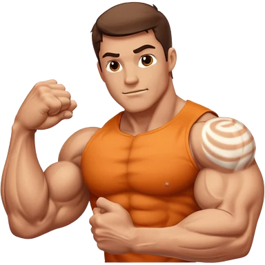 Flexing muscle arm with rising chart, bold minimal style, white background emoji