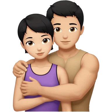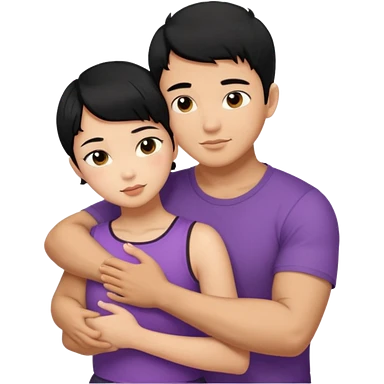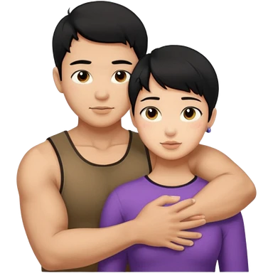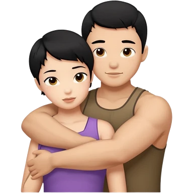 buff tan asian Man black hair hugging girl with black pixie cut emoji
