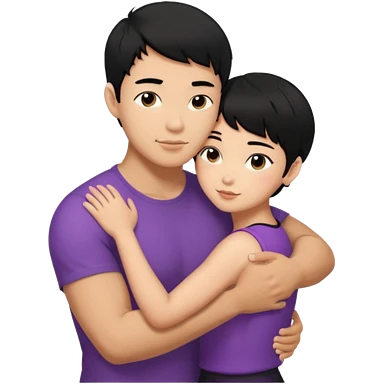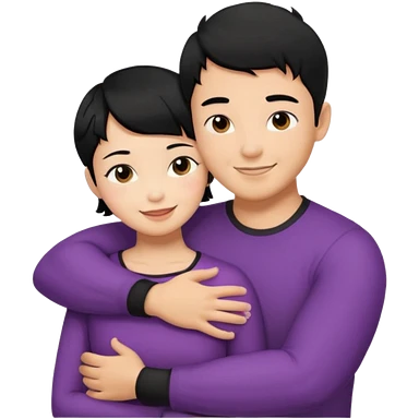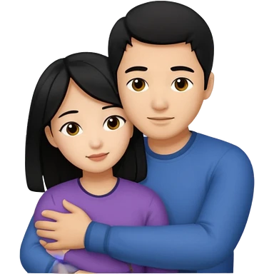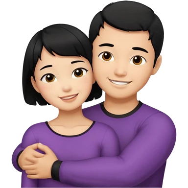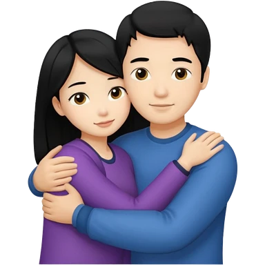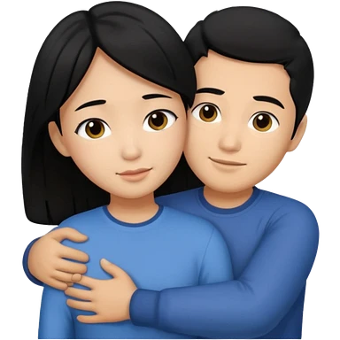 Asian Man black hair hugging girl with black hair emoji