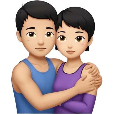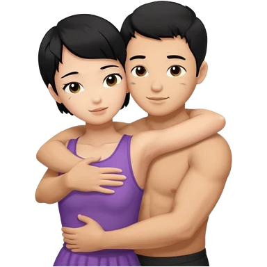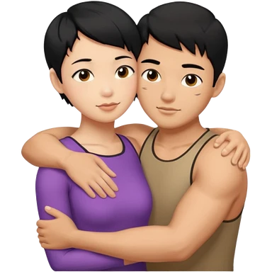 buff Asian Man black hair hugging girl with black pixie cut emoji