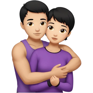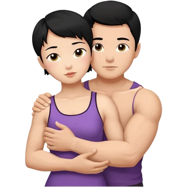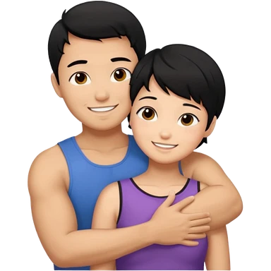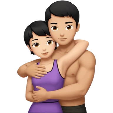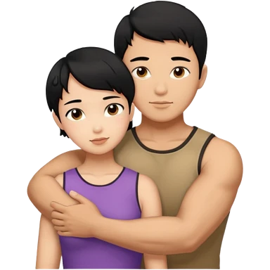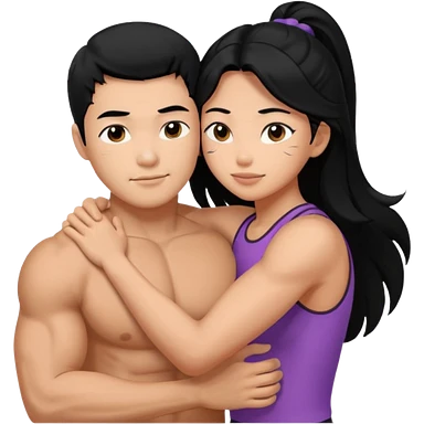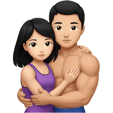 muscle Asian Man black hair hugging girl with black hair emoji | AI Emoji Generator