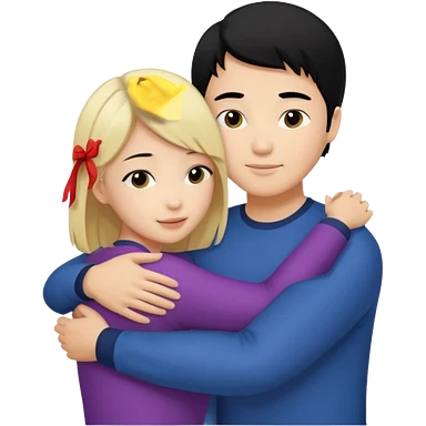 Asian Man black hair hugging blonde girl emoji