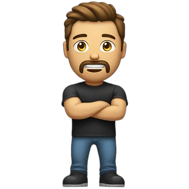 un homme blanc brun un peu musclé avec un tee shirt noir oversize qui est en train de coder sur son mac m1 emoji
