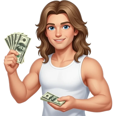 muscular shirtless twink with very long hair winning money emoji