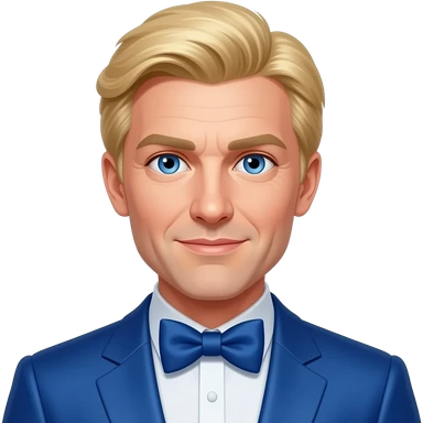 Chris Evans with blue eyes, blonde hair, blue silk suit with bow tie emoji