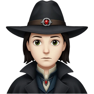 Vampire male, with long black hair, masculine face, fine lips, serious face expression, black sunglasses, lather jacket, underneath black t-shirt, strong muscular body emoji