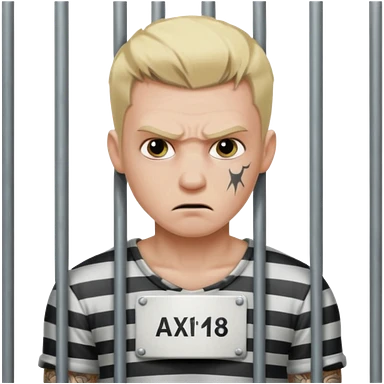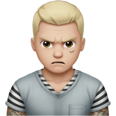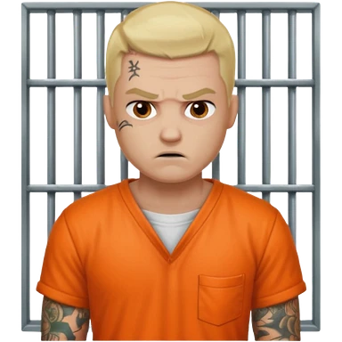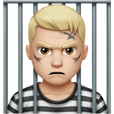 angry tattooed blonde male prisoner with prison cell bg emoji