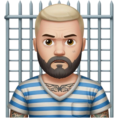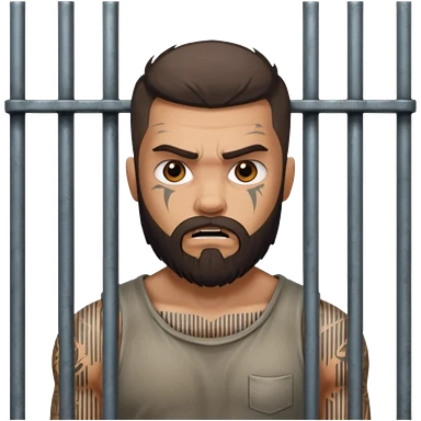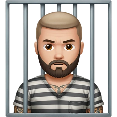 angry tattooed bearded white boy male prisoner with prison cell bg emoji