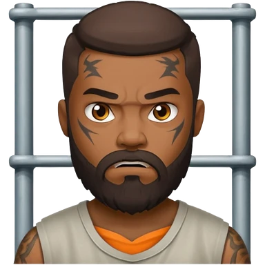 angry tattooed bearded boy male prisoner with prison cell bg emoji