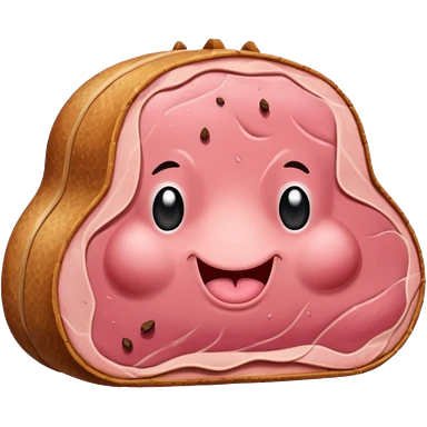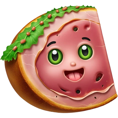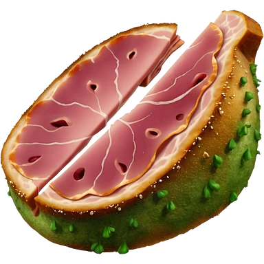 dry-cured ham thin folded slices deep pink to red white fat streaks silky translucent marbled folds curls creamy integrated fat no bread fruit plate faces clean 3D soft shadows transparent background emoji scale emoji