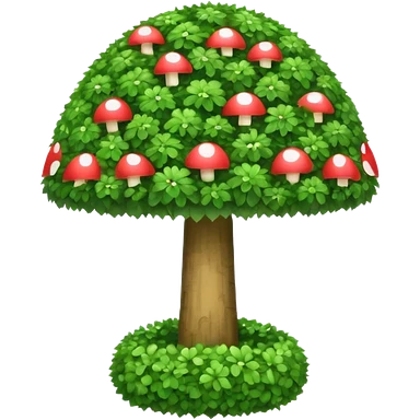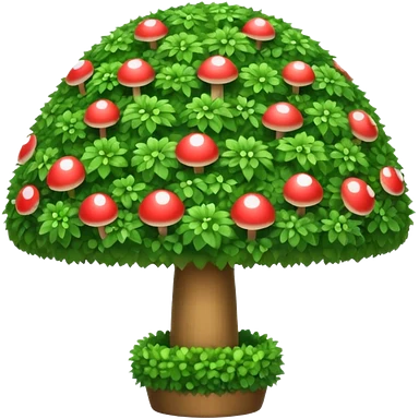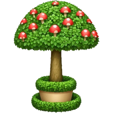 mushroom shaped topiary tree emoji, umbrella shaped green bush, cute emoji style, white background emoji