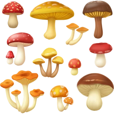 Mushrooms emoji: lion's mane, fly agaric, reisha, psylocibine (magic) mushroom emoji