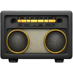 Icon for R&B Music Listening: large concert speakers with waves of musical notes coming out, along with a bass guitar, drum kit, and synthesizer. The icon should convey the energetic and rhythmic vibe of R&B music. Transparent background. emoji