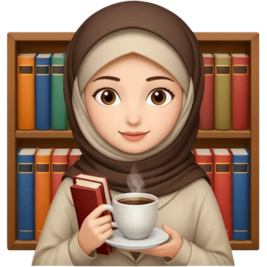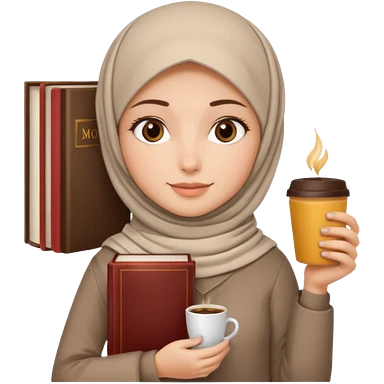 Muslim girl with coffe and books emoji | AI Emoji Generator