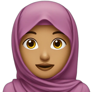 Muslimah woman with a purple hijab, a sweet smile, and a heart shape. emoji | AI Emoji Generator