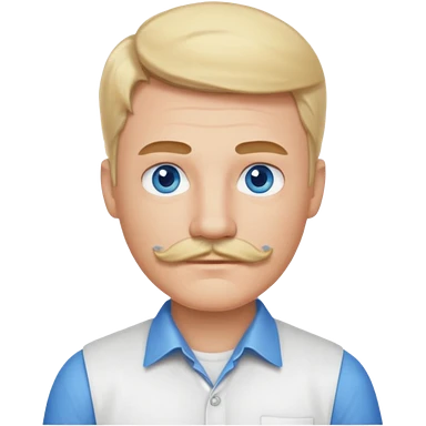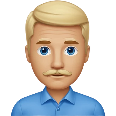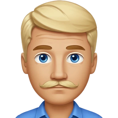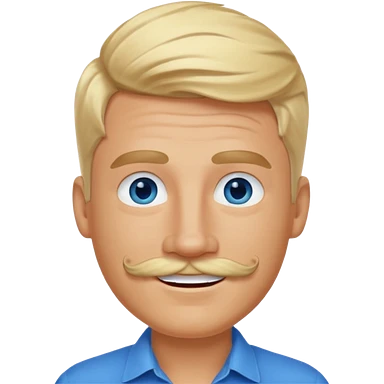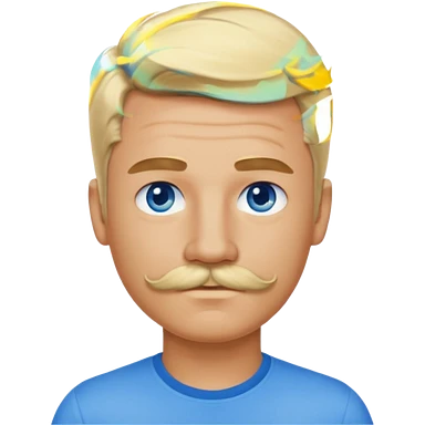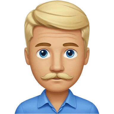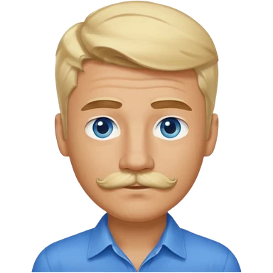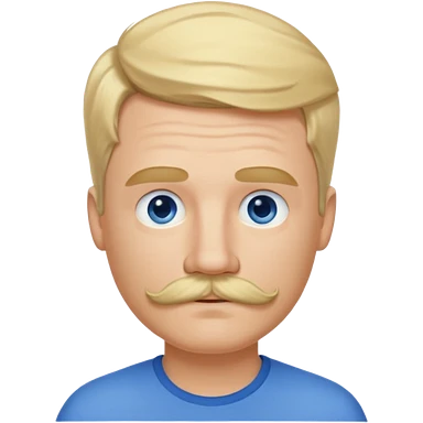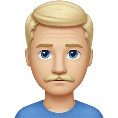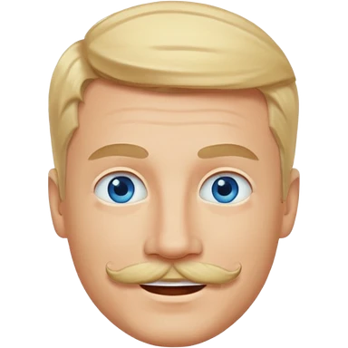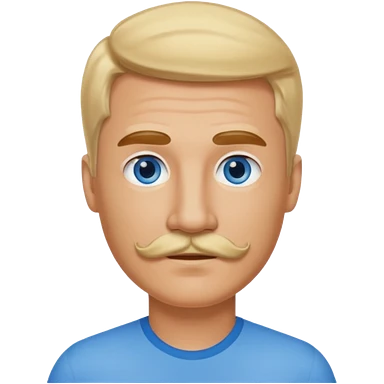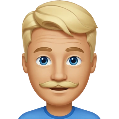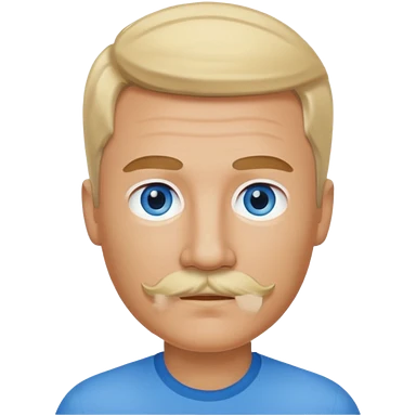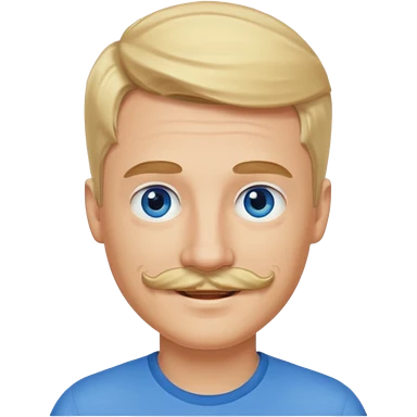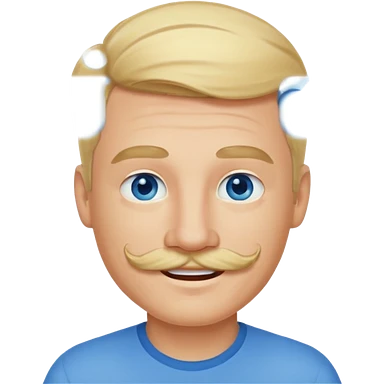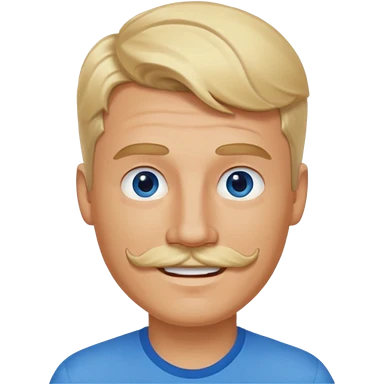 normal emoji 👨🏼 white guy with blond hair, mustache, and blue eyes. No shoulders or neck. Just head. Hair a little mussed and stylish. Smiling emoji