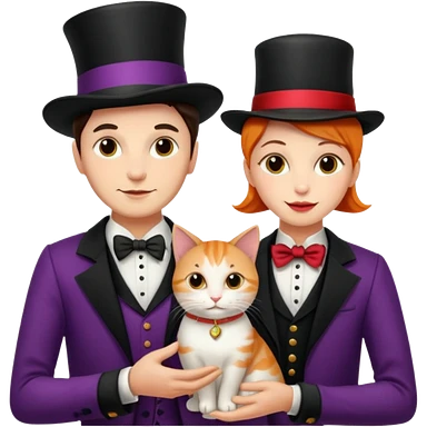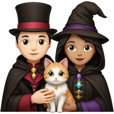 magician couple and their pet cat emoji