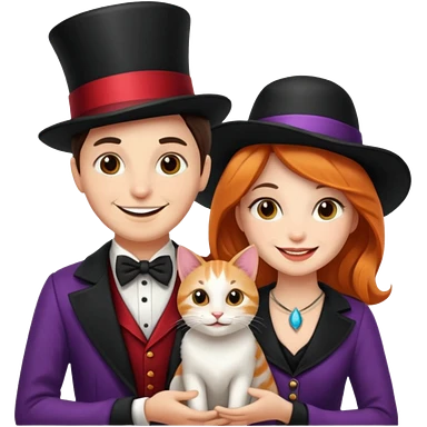 magician couple and their pet cat emoji