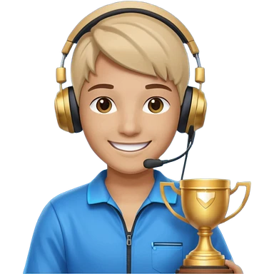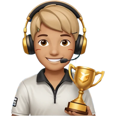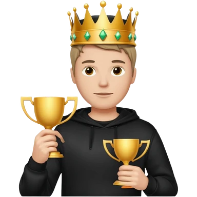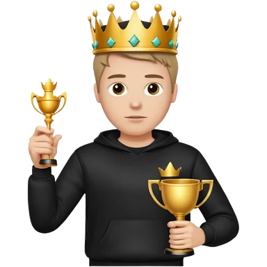 MVP + Tournament +Gaming + Black sweatshirt + White guy with crown + Tournament Cup emoji