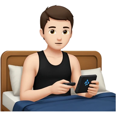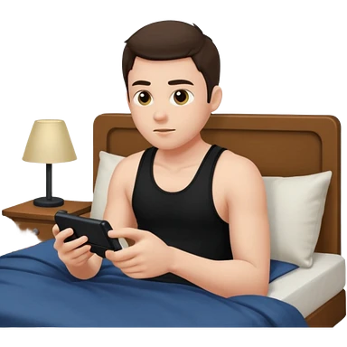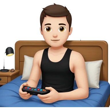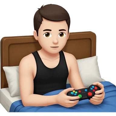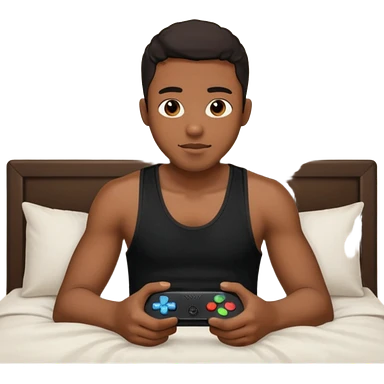my boyfriend in his bed with a black singlet on playing video games emoji