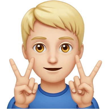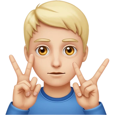 Emoji points to his eyes to create look at my eyes emoji, with one hand make to fingers point to the two eyes emoji