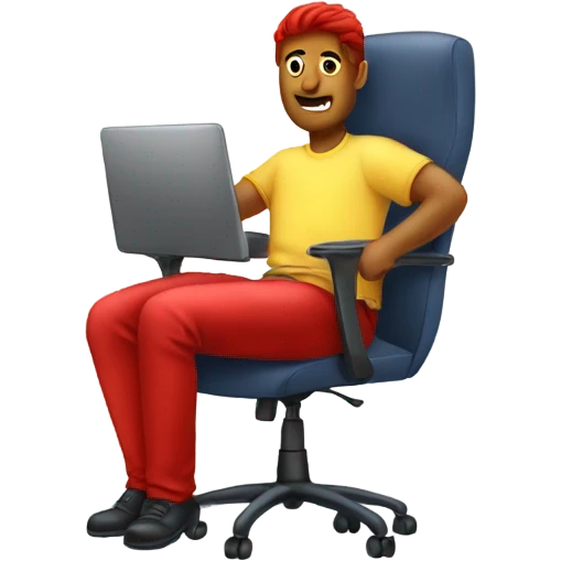 My friend sitting in his computer chair with really red legs emoji | AI Emoji Generator