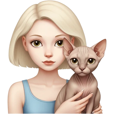 a Canadian sphinx with blue eyes, it is held by a girl with dark hair and brown eyes and hugs emoji