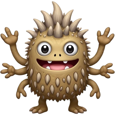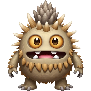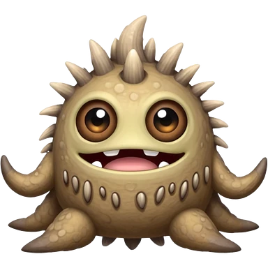 My Singing Monsters Dust element monster, sandy cracked body, muted brown-gray colors, drifting dust particles, cute cartoon style emoji