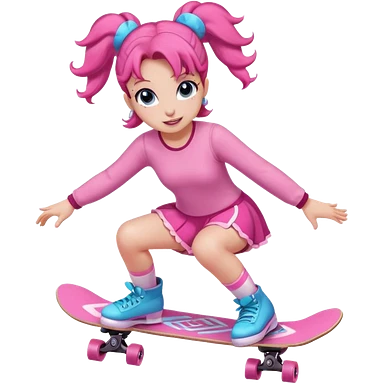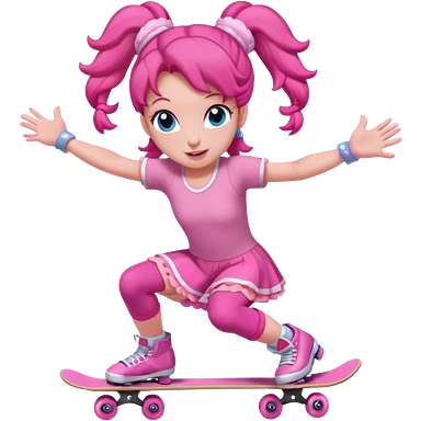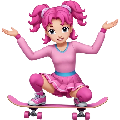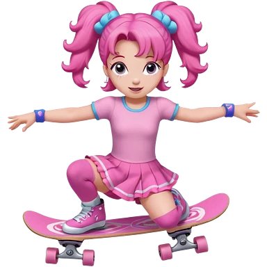 Cute skater girl pinkie pie with two buns and pink outfit, gliding with playful energy. emoji