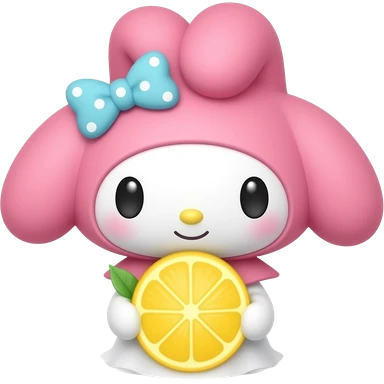 My melody dancing in a meadow of flowers while eating a strawberry emoji