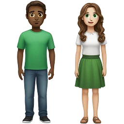 My name is Noah and this is my brother Simon. We are twins and we are fifteen years old. I have brown eyes and straight black hair. Simon has green and brown hair, short and curly emoji | AI Emoji Generator