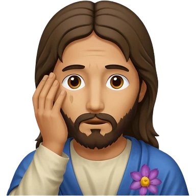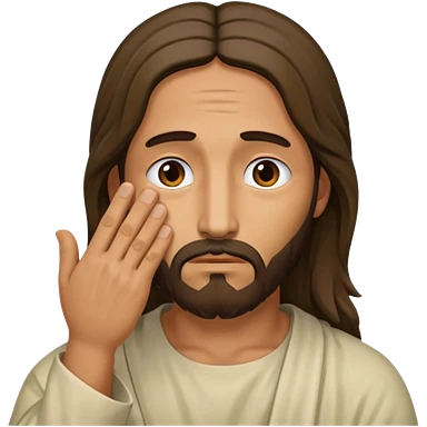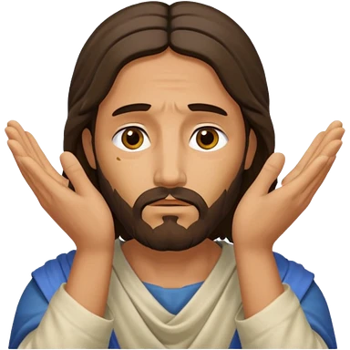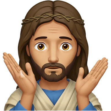 my workmate accidentally misspelled "Jesus christ" as "Jesbus christ", make an emoji of jesus with his HANDS ON HIS HIPS, making a face as if he's laughing at how silly someone is emoji | AI Emoji Generator
