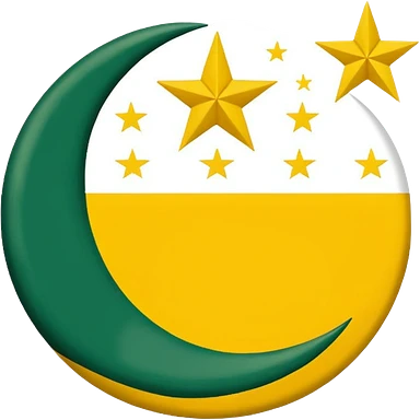 Flag of the actual Azad Kashmir with yellow stripes,green background and white moon and star emoji