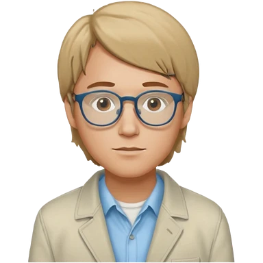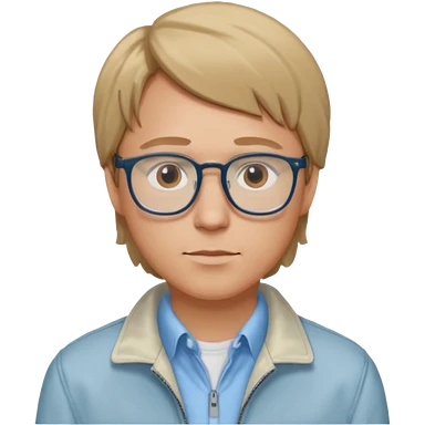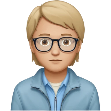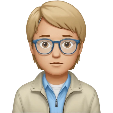 Brian Lackey from Mysterious Skin with brown eyes, dark blonde hair, light blue shirt, ivory jacket, glasses emoji