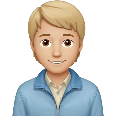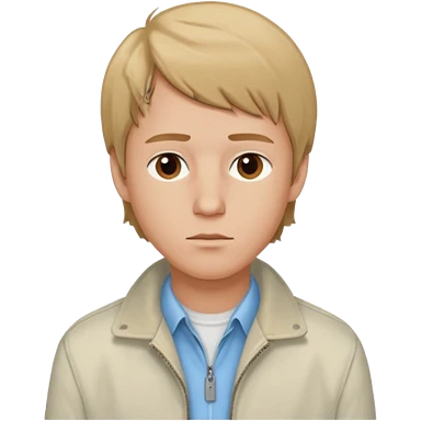 Brian Lackey from Mysterious Skin with brown eyes, dark blonde hair, light blue shirt, ivory jacket emoji