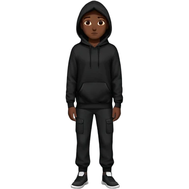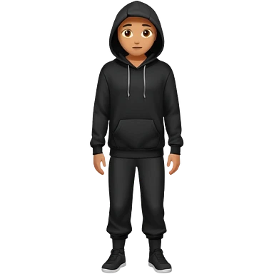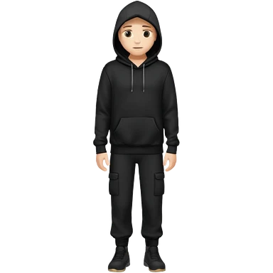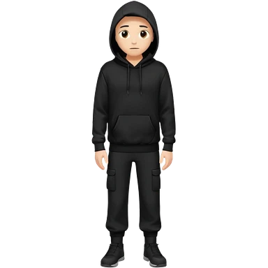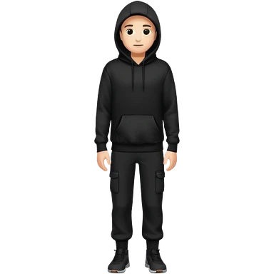 fullbody Mysterious man in black hoodie, hands in pockets and black pants emoji