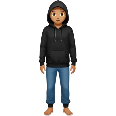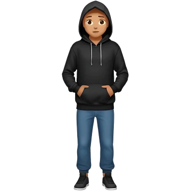 fullbody Mysterious man in black hoodie, hands in pockets emoji