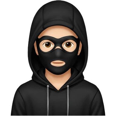 Mysterious man black hoodie black mask emoji | AI Emoji Generator