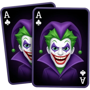 two cards next to each other like joker type but black and purple as if he is a trickster emoji